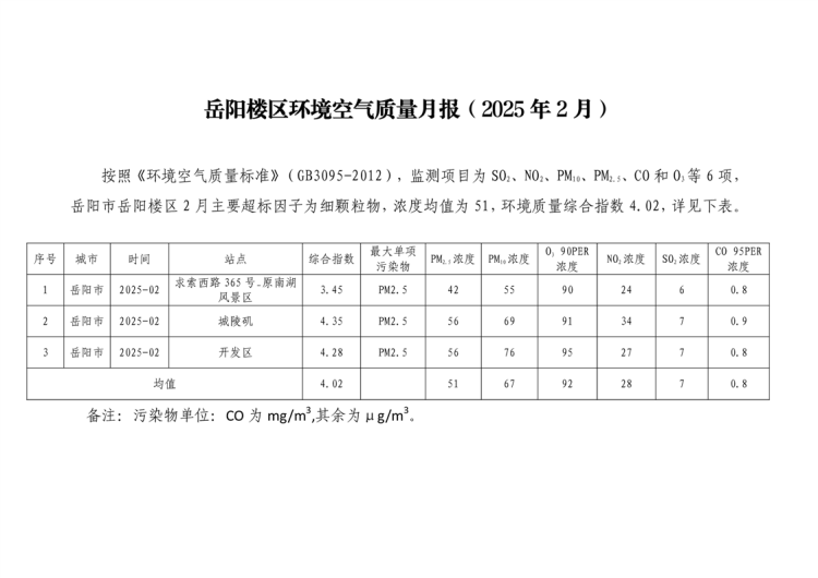 岳阳楼区环境空气质量月报(2025年2月)