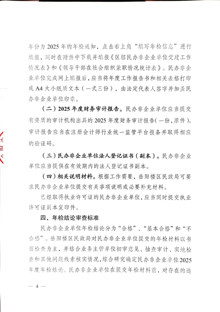 岳阳市岳阳楼区民政局关于开展区辖民办非企业单位2025年度检查工作的函