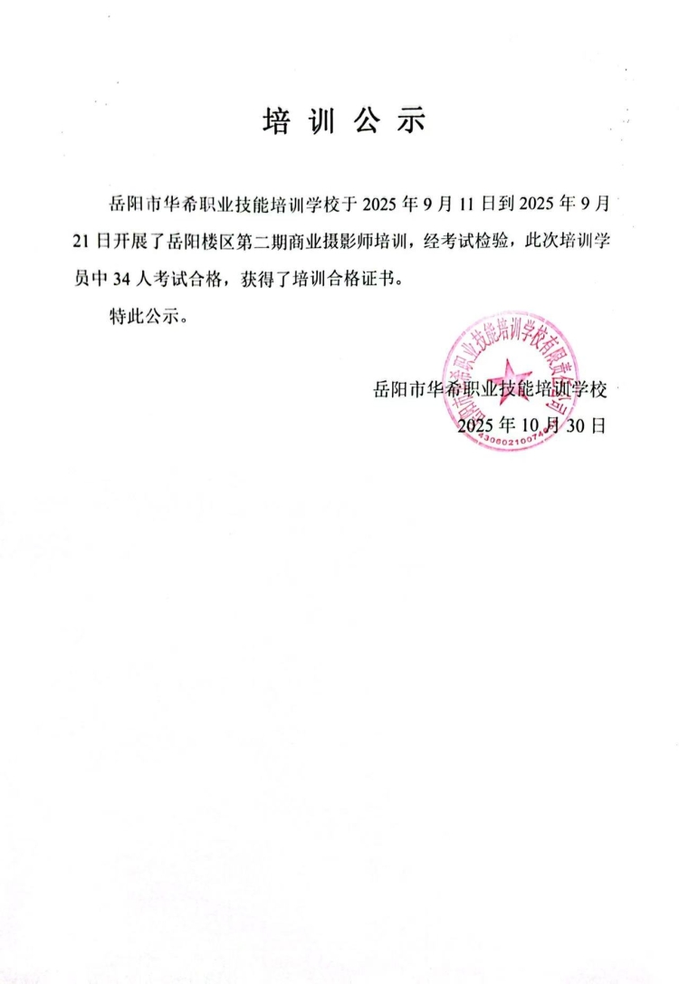 岳阳市华希职业技能培训学校2025年职业培训公开信息