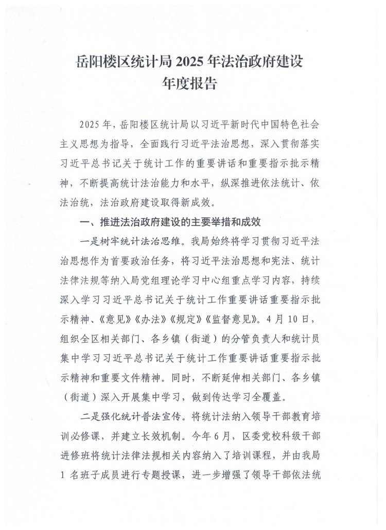 岳阳市岳阳楼区统计局2025年法治政府建设年度报告