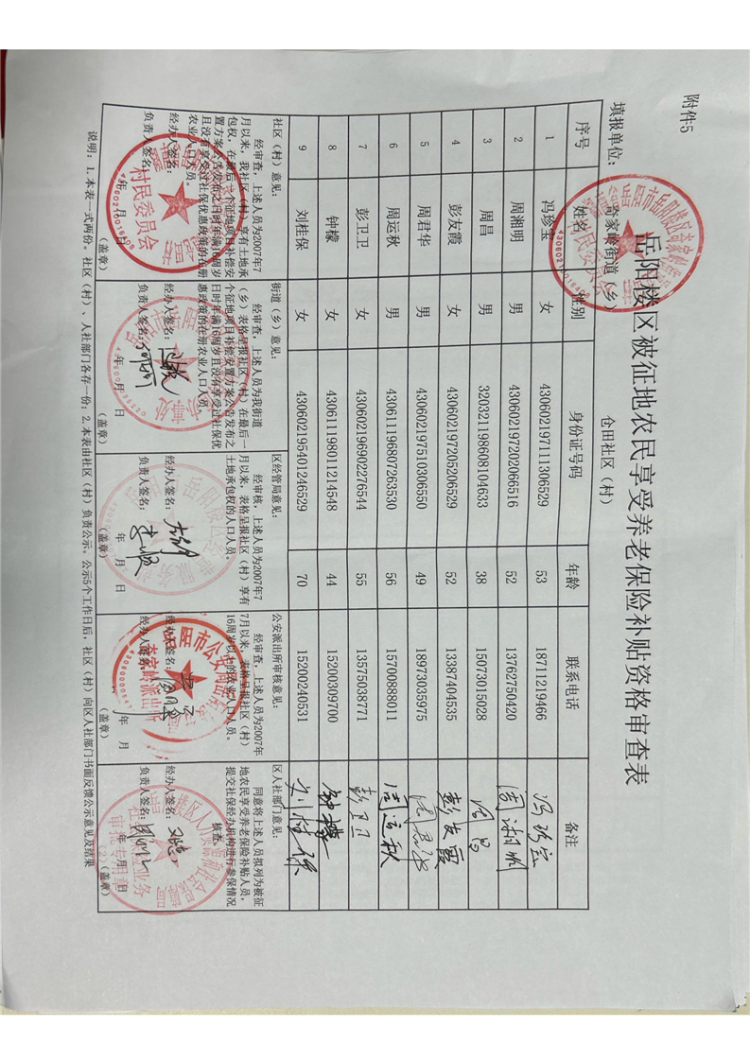 岳阳市岳阳楼区奇家岭街道仓田村被征地农民养老保险补贴资格审查公示