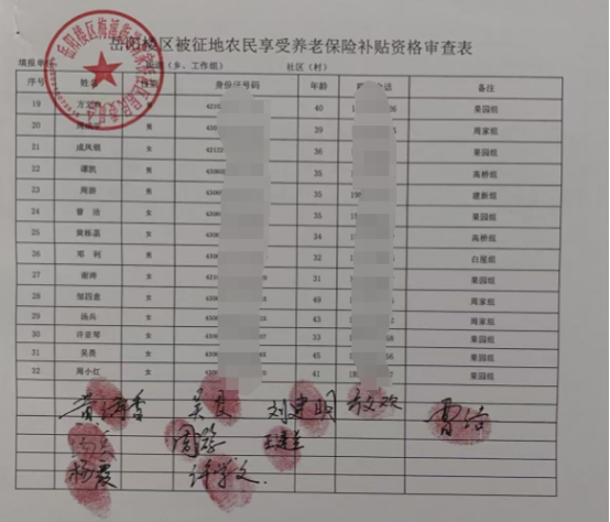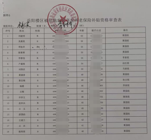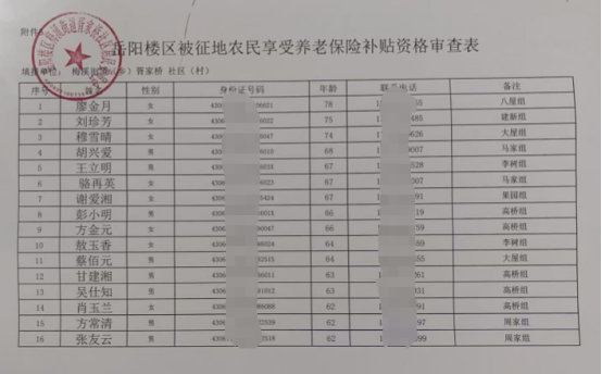 岳阳楼区被征地农民享受养老保险补贴资格审查表
