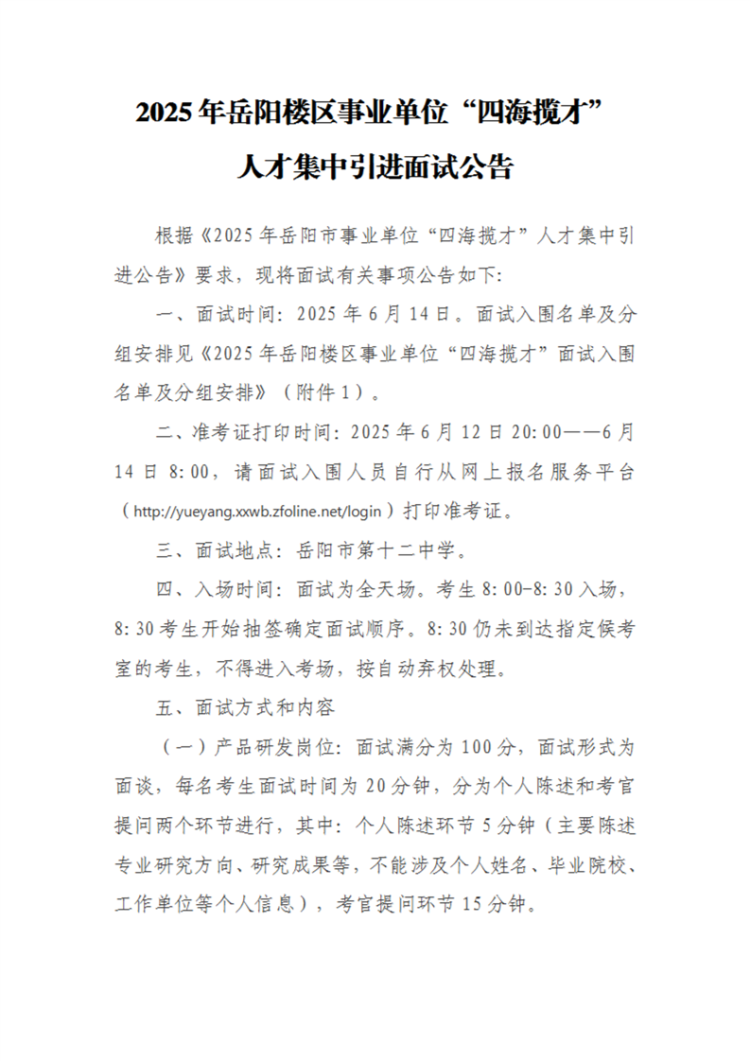 2025年岳阳楼区事业单位“四海揽才”人才集中引进面试公告