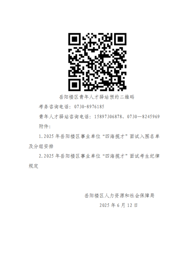2025年岳阳楼区事业单位“四海揽才”面试入围名单及分组安排.pdf
