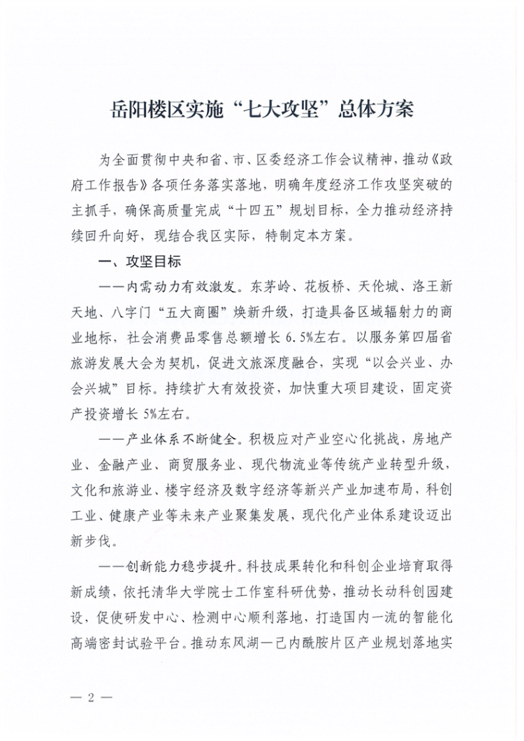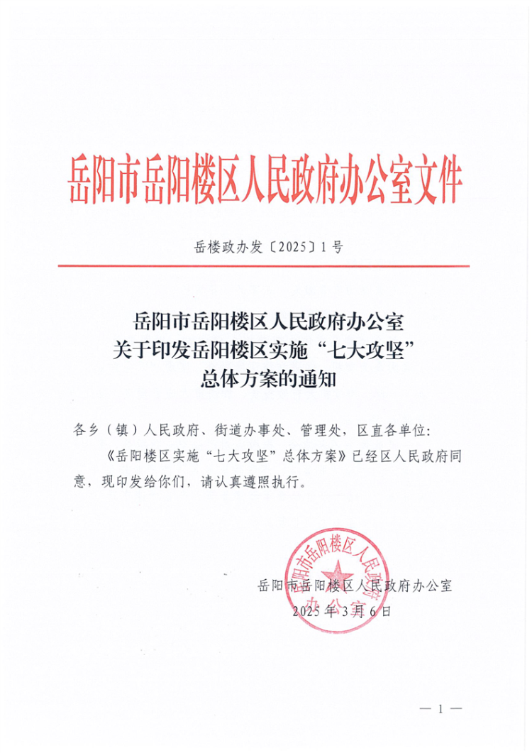 关于印发岳阳楼区实施“七大攻坚”总体方案的通知(岳楼政办发〔2025〕1号)