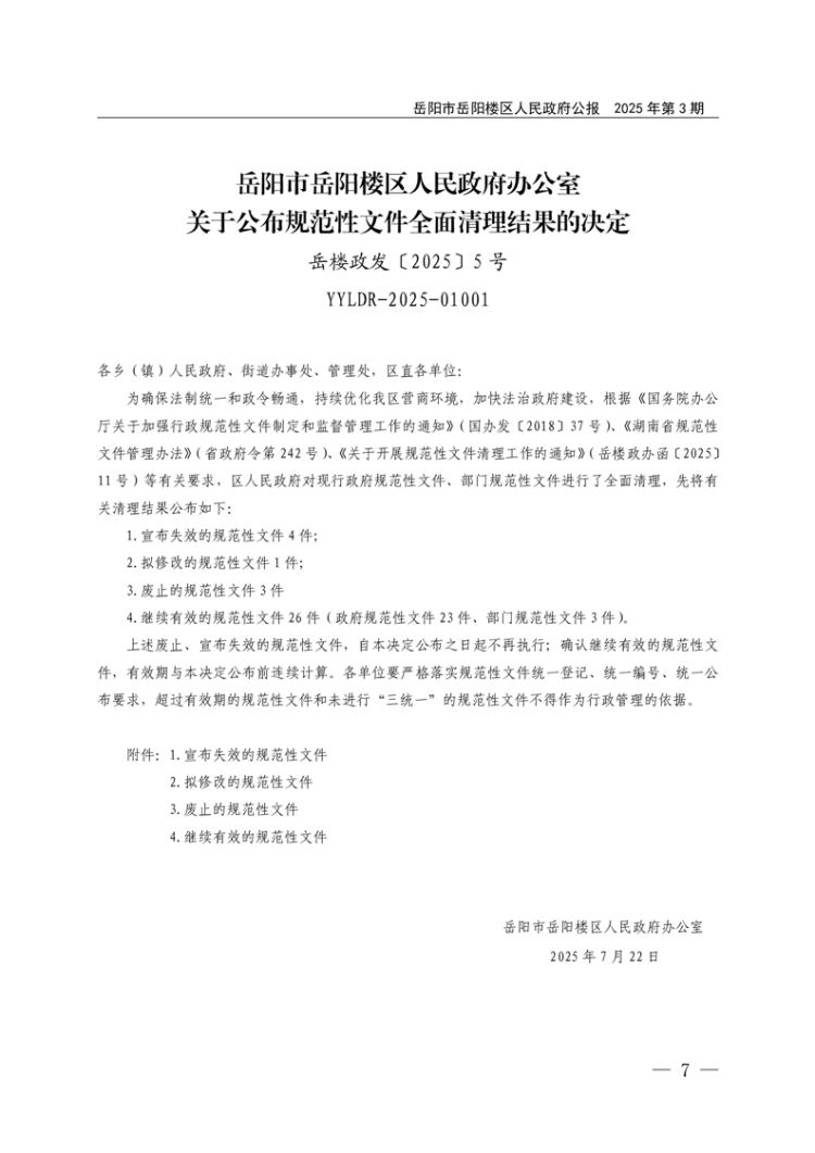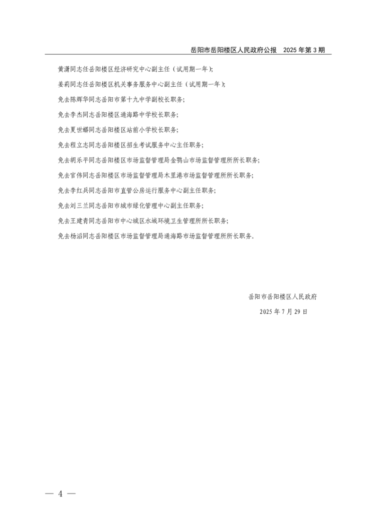 岳阳市岳阳楼区人民政府公报2025年第3期