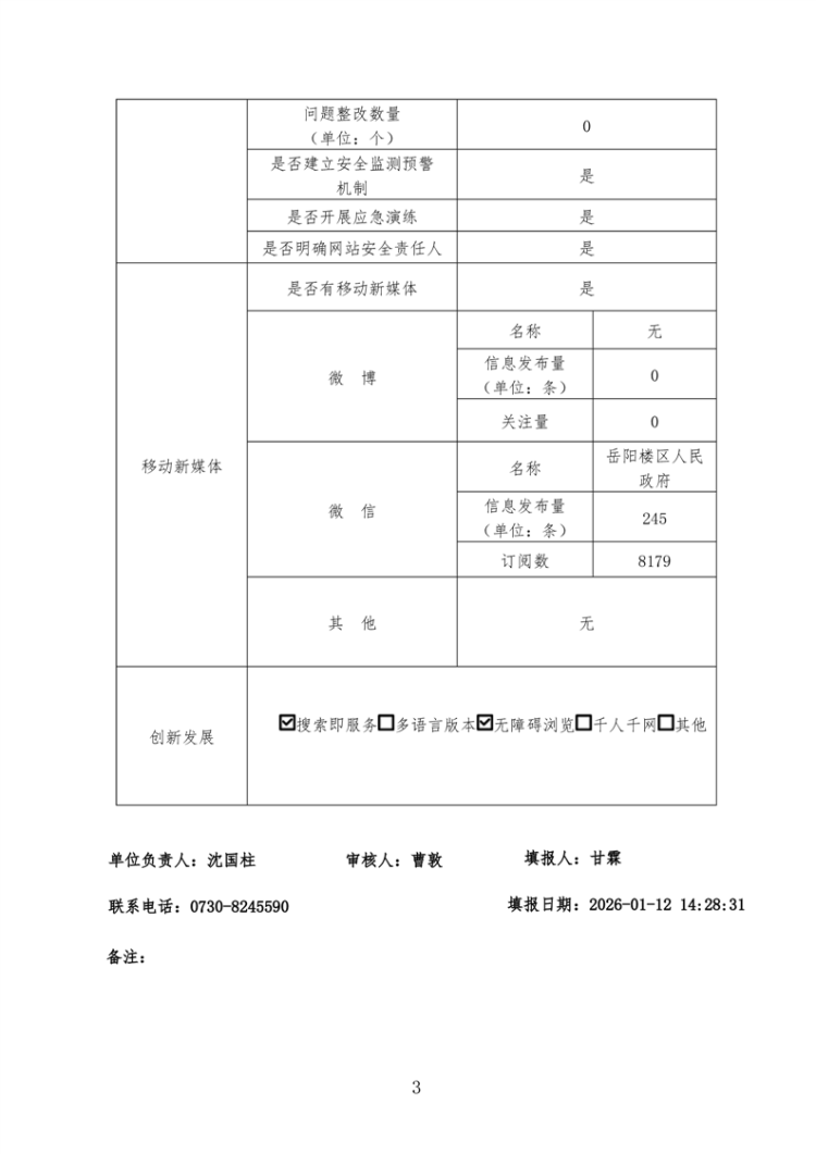 2025年岳阳楼区人民政府网站年度工作报表