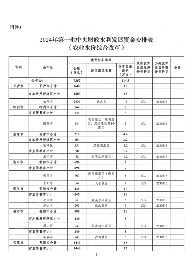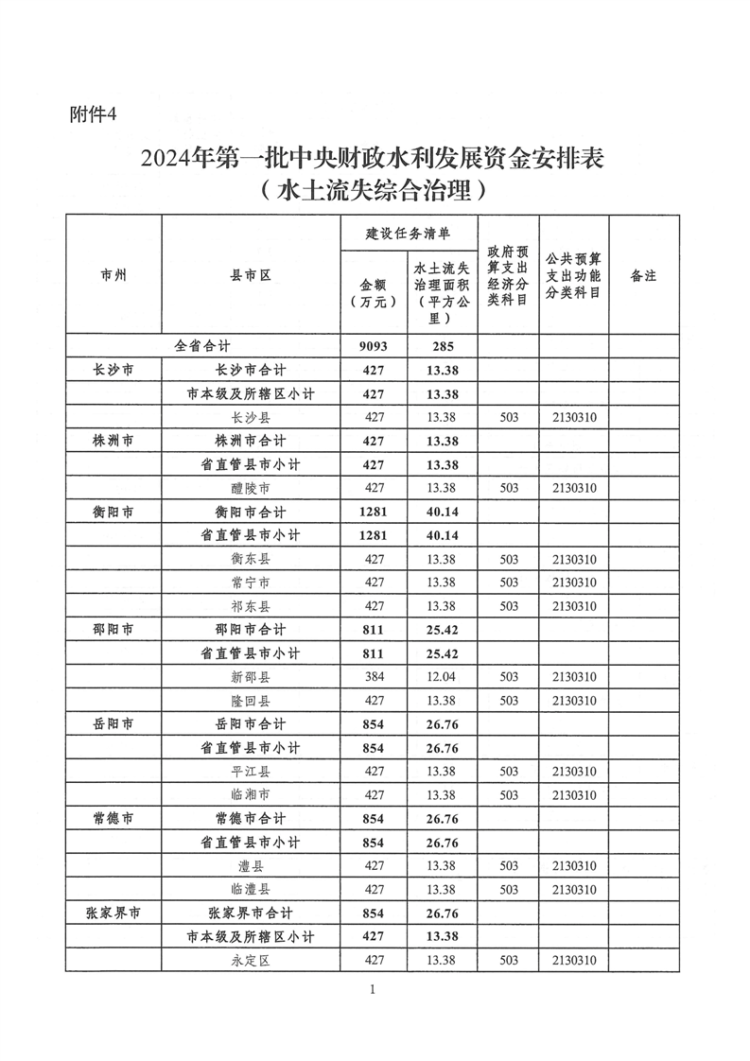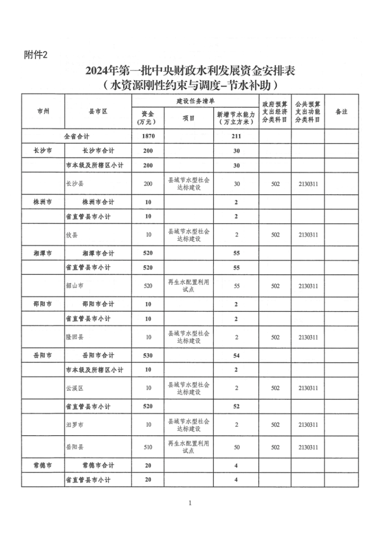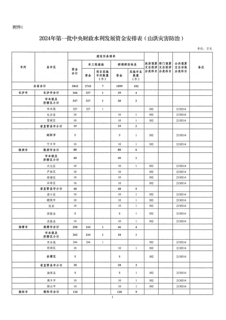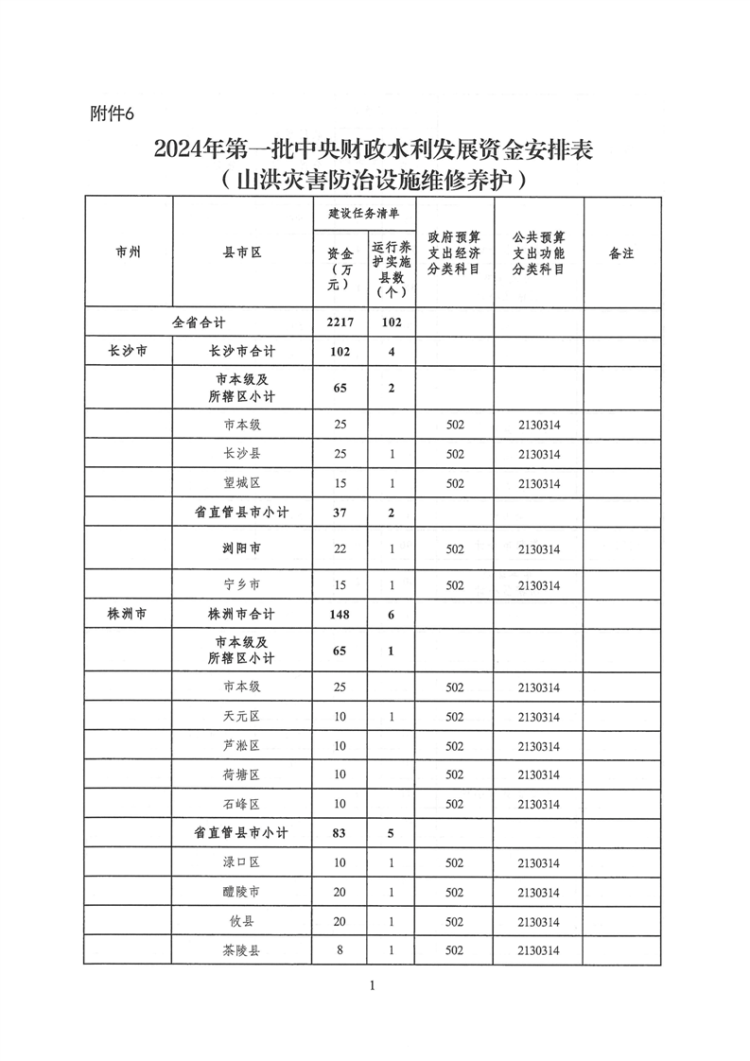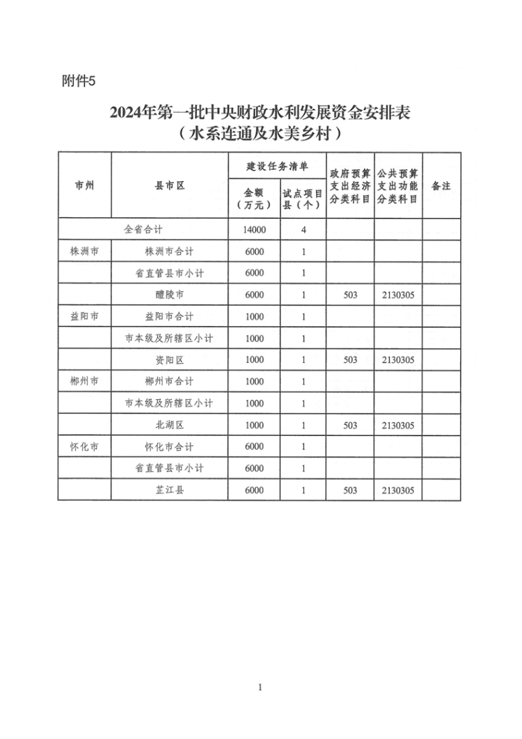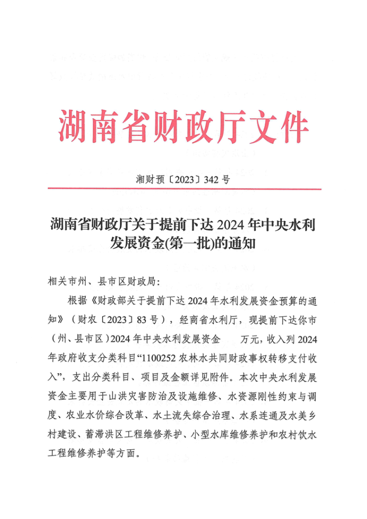 2024年第一批中央财政水利发展资金(市县)湘财预2023-342